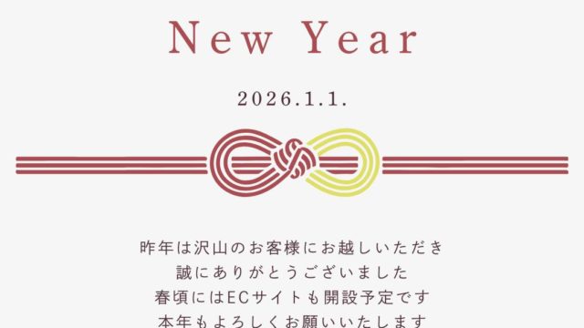 お知らせ新年あけましておめでとうございます 今年はecサイトを開設し通販を始めて参ります取り扱い商品は改めてご案内させていただきますね皆さまにとって良い1年になりますように 2026.01.01お知らせ