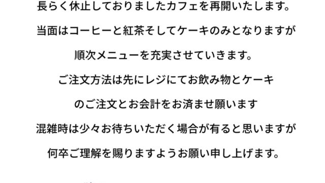 お知らせカフェ再開のお知らせ 長らく休止しておりましたカフェ営業を再開いたします😊当面はコーヒーと紅茶そしてショーケース内のケーキのみのご提供となりますが、順次メニューを充実させていきますので少々お待ち下さい🙇🏻♂️ご... 2026.01.09お知らせ